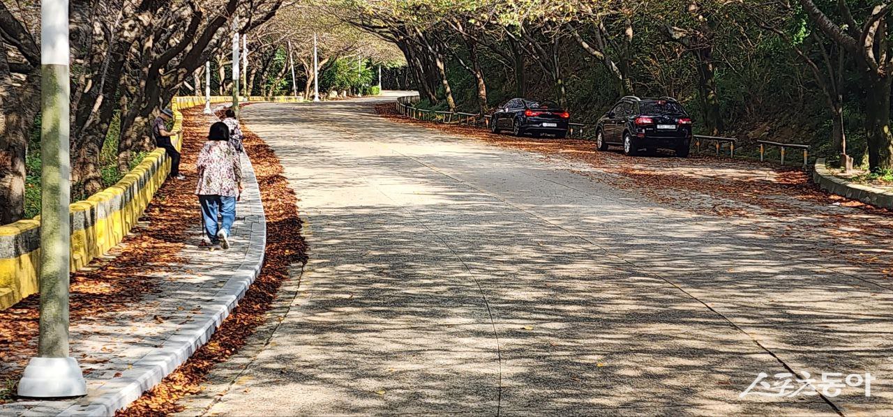 부산 도심 속 명산 황령산로 정상길 일대가 낙엽과 쓰레기로 뒤덮여 시민과 관광객들의 눈살을 찌푸리게 하고 있다. 특히 단풍철을 맞아 많은 이들이 찾는 길목임에도 불구하고, 관리 주체인 구청은 청소에 손을 놓고 있어 대책이 시급하다는 지적이다.