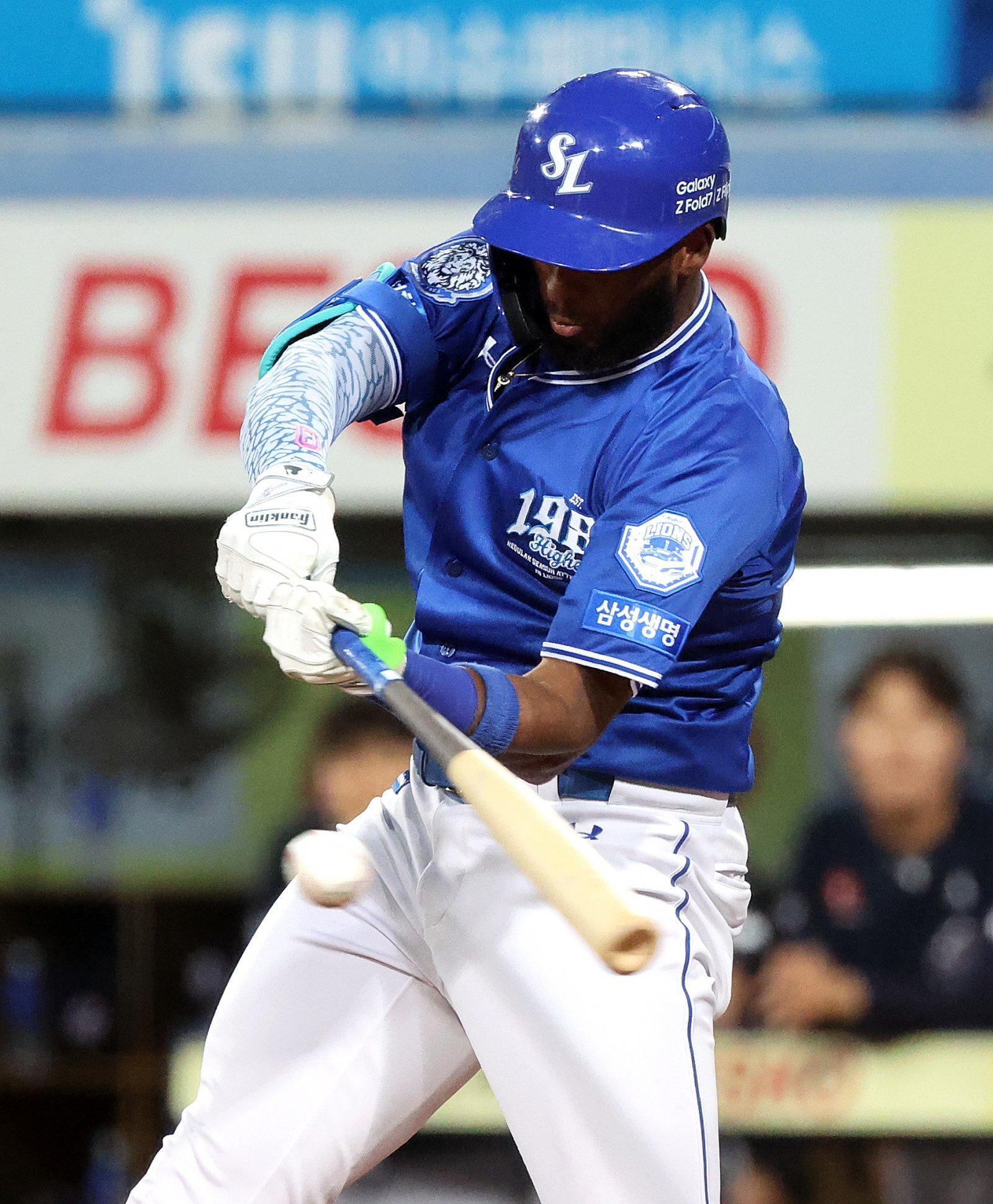 팀이 5-0으로 앞선 4회말 1사 2·3루서 3번째 타석에 들어선 디아즈는 롯데 김강현을 상대로 1루수 옆을 빠지는 2루타를 쳐냈다. 3루 주자 이재현, 2루 주자 김성윤이 여유 있게 홈을 밟아 디아즈의 2타점이 완성됐다.
