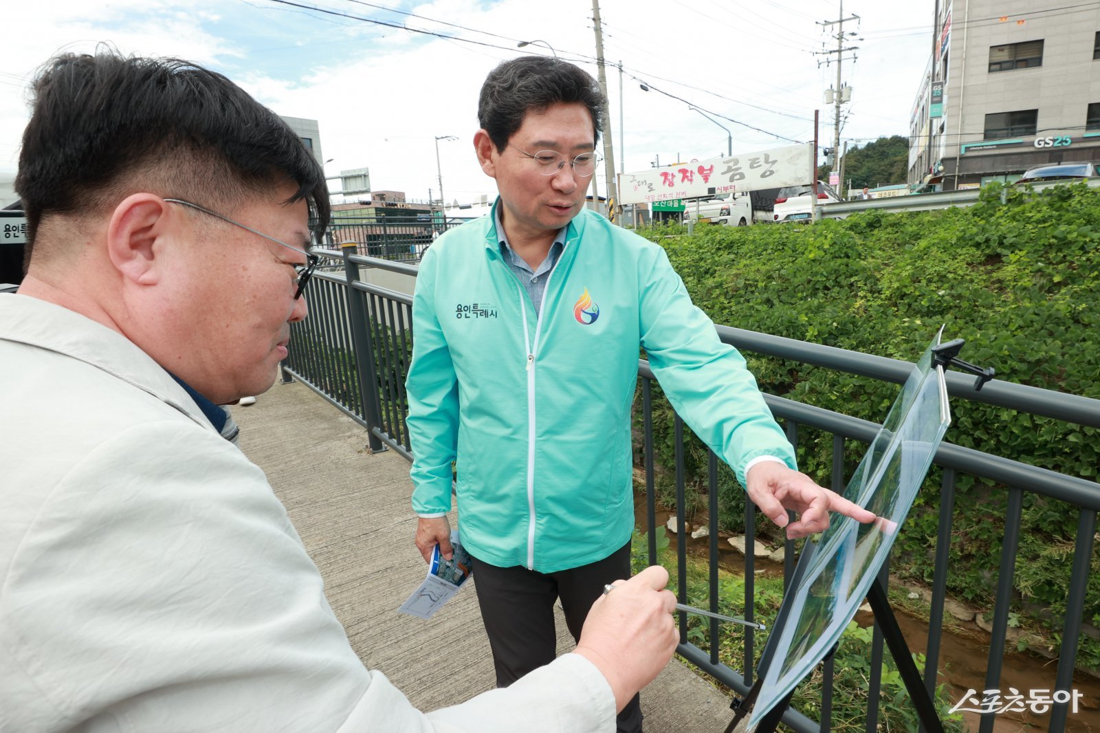 현장에서 이상일 시장은 시민 안전과 경안천 접근성 개선 효과를 강조하며 관계자들에게 “지역 주민들이 경안천 산책로를 보다 편리하고 안전하게 이용할 수 있도록 설계 단계부터 주민의 눈높이에서 세심히 챙겨 추진해 달라”고 당부했다.