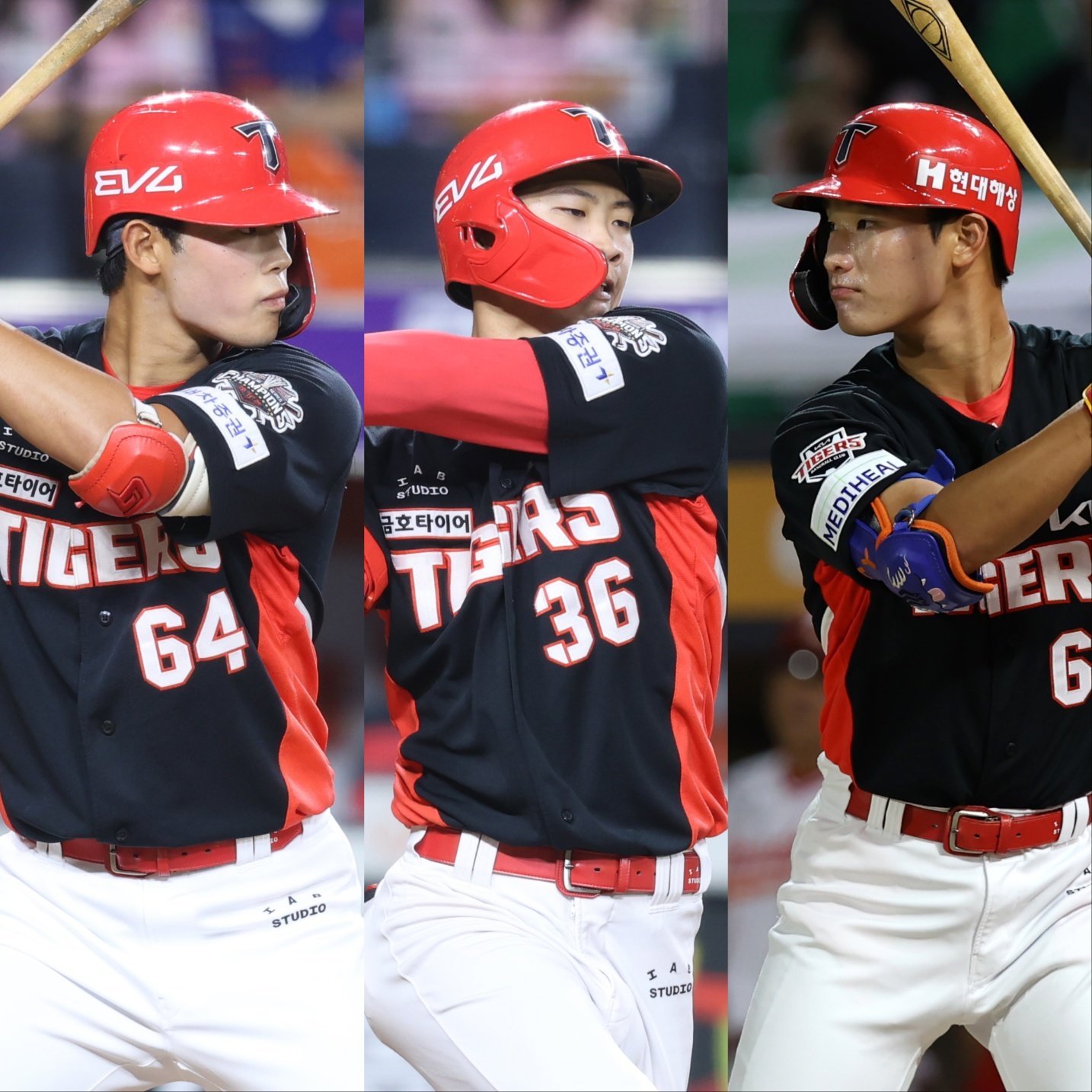 KIA는 남은 시즌 어린 외야수인 정해원, 박재현, 박헌(왼쪽부터)에게 기회를 주며 그들의 성장을 이끌어내려 한다. 사진제공|KIA 타이거즈