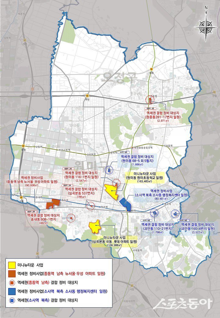 부천시는 장기간 침체된 원도심 정비사업 활성화를 위해 29일 ‘2030 도시·주거환경정비 기본계획’ 변경안을 확정·고시했다(위치도). 사진제공|부천시