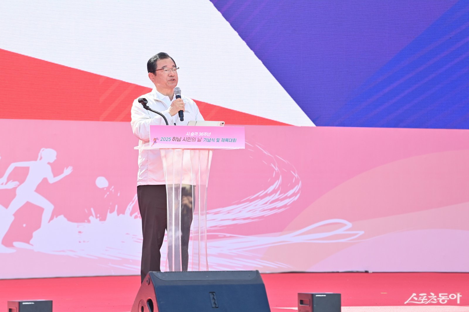 하남시는 지난 26일부터 27일까지 하남종합운동장 등 시 전역에서 열린 ‘2025 하남시민의 날 기념식 및 체육대회’와 ‘2025 하남이성산성문화제’가 시민들의 뜨거운 호응 속에 성황리에 마무리됐다(이현재 시장 기념사 모습). 사진제공|하남시