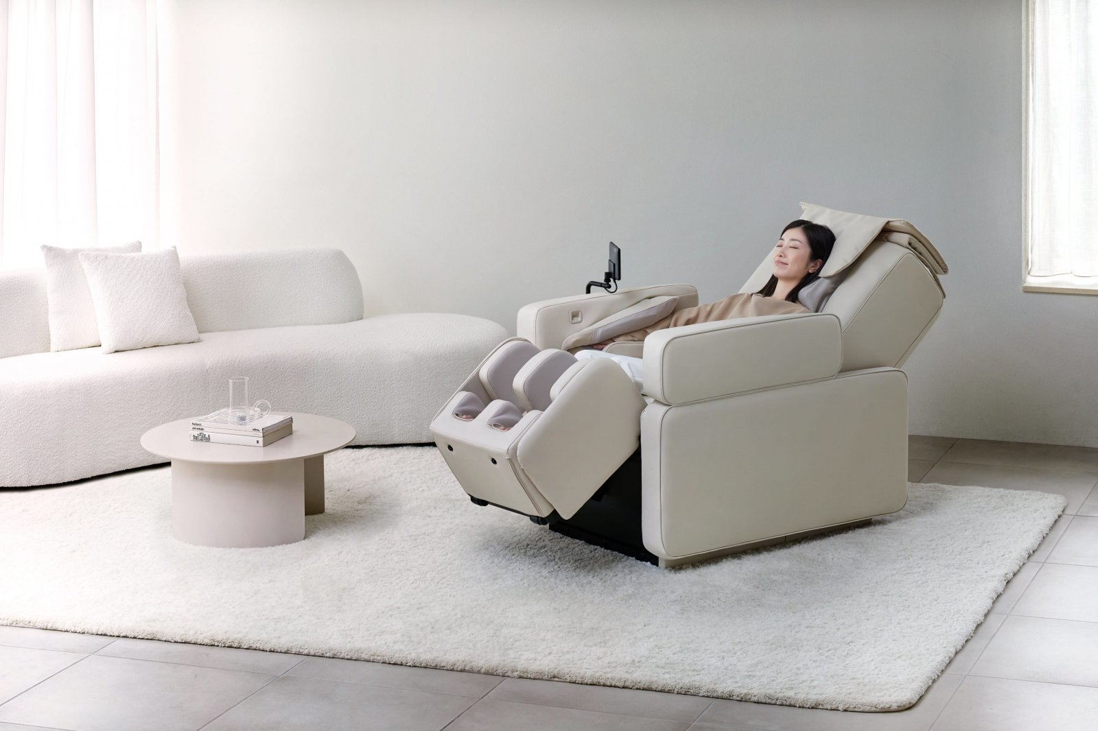 편리성 부분에서는 120도에서 최대 160도까지 각도 조절이 가능한 전동 리클라이닝 기능으로 독서‧휴식‧안마 등 상황에 맞는 자세를 지원한다. 또 직관적인 화면 구성의 터치스크린, 발판 조절, 오작동 방지용 안전 잠금 장치, 바퀴 탑재 등 사용자 친화적인 기능을 갖췄으며 내장된 블루투스 스피커로 음악을 감상하면서 USB 포트를 활용한 충전도 가능하다.