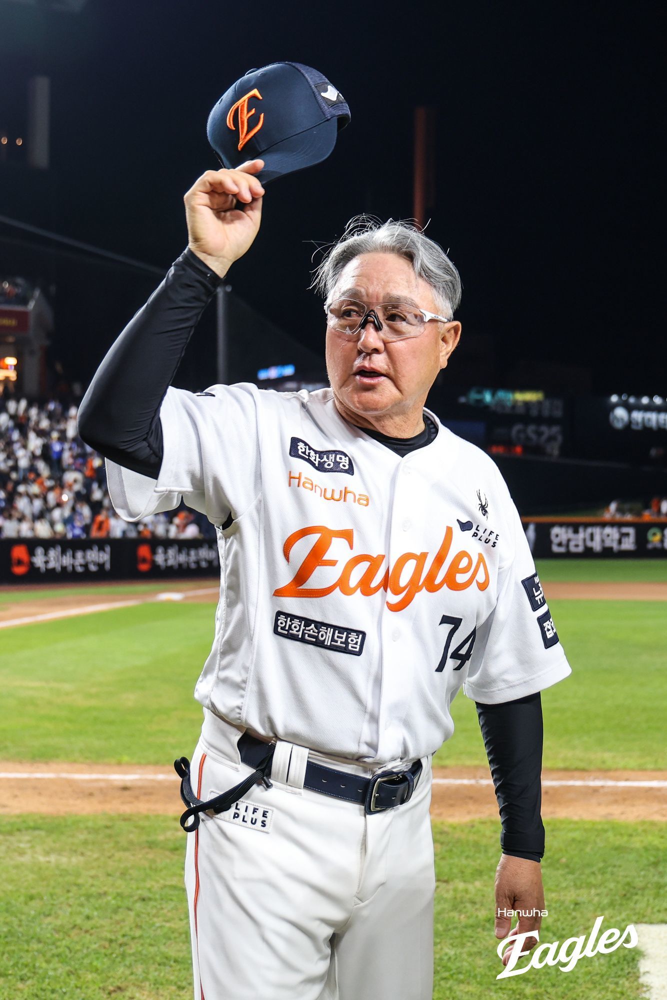 불펜에선 조동욱(0.2이닝 무실점)~김종수(1이닝 1실점)~김범수(1이닝 무실점)~박상원(0.2이닝 2실점)~황준서(0.1이닝 무실점)~한승혁(1이닝 무실점)~김서현(1이닝 무실점)이 이른바 ‘벌떼 야구’로 팀 승리를 지켰다.