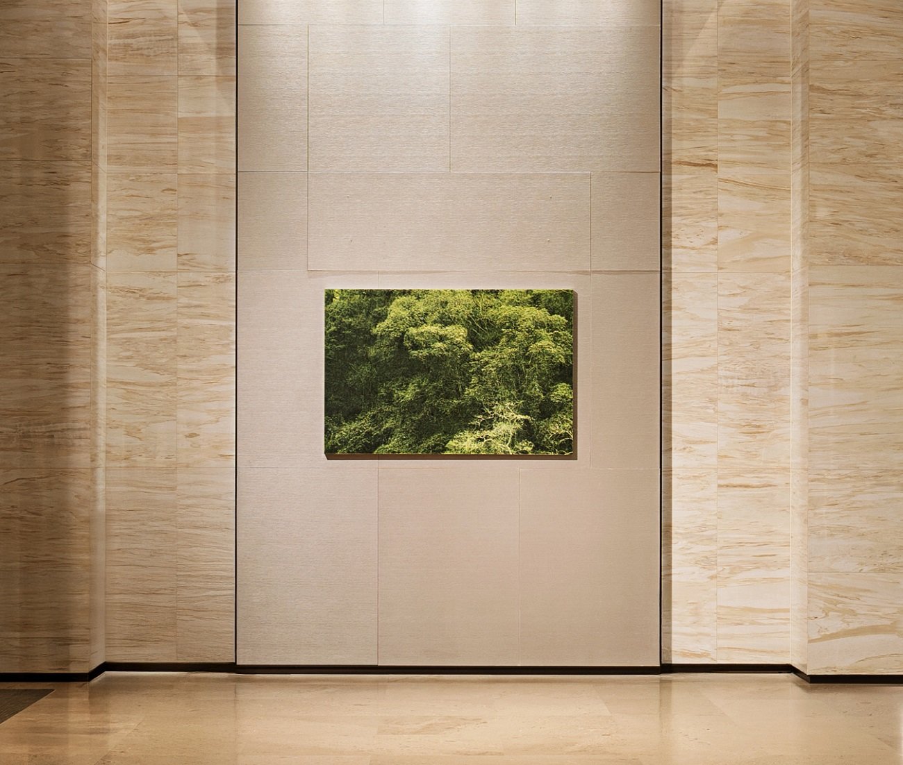 시그니엘 부산은 오픈월(OPEN WALL)과 손잡고 ‘못의 작가’로 불리는 유봉상 전시를 10월 31일까지 진행한다. 유봉상은 수만 개의 못을 캔버스 위에 쌓아 올려 숲과 강, 바다 같은 자연 풍경을 생동감 있게 구현하는 작품 세계로 주목받아왔다. 이번 전시에서는 개인전 ‘그린란드(Greenland)’ 출품작을 포함해 총 7점을 호텔 로비 곳곳에 배치, 투숙객이 일상처럼 예술을 마주할 수 있도록 했다.