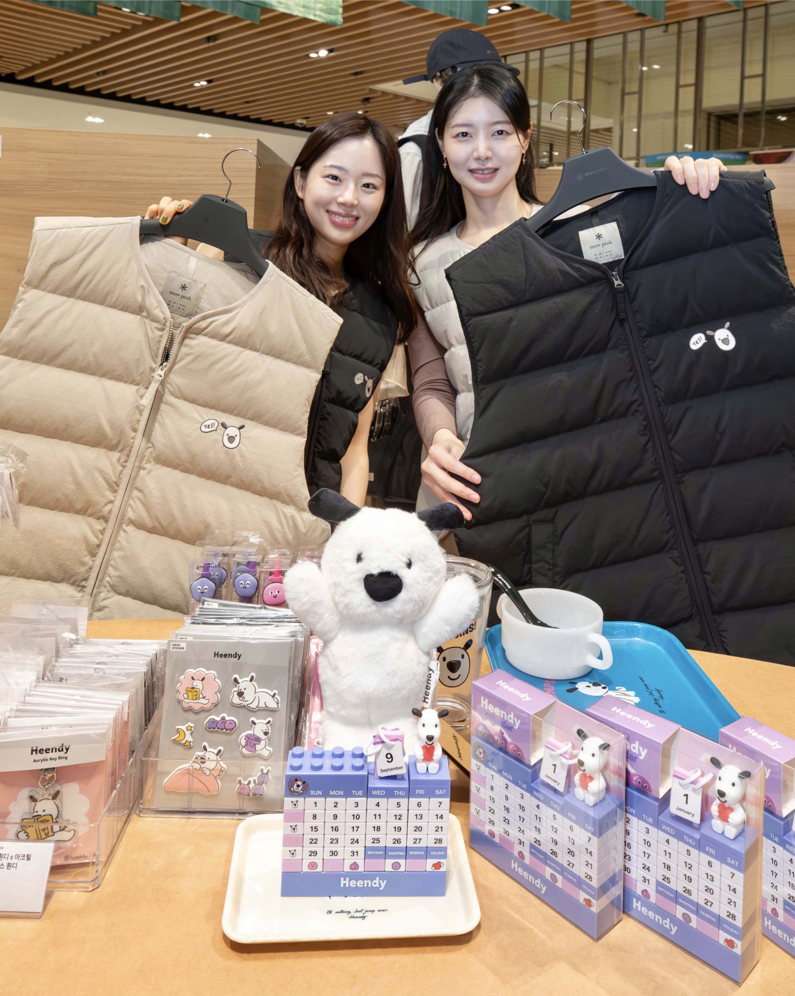 현대백화점이 10월 12일까지 판교점 7층에서 ‘365 리사이클 위드 흰디’ 팝업스토어를 운영한다. 흰디는 현대백화점 자체 캐릭터로, 자원순환 프로젝트 ‘365 리사이클’을 통해 기부 받은 패딩으로 제작한 ‘흰디 업사이클 다운 베스트’를 선보인다. 경기도·경기콘텐츠진흥원의 ‘K-콘텐츠 IP 융·복합 제작지원’의 일환으로 기획했다는 게 회사 측 설명이다. 사진제공|현대백화점
