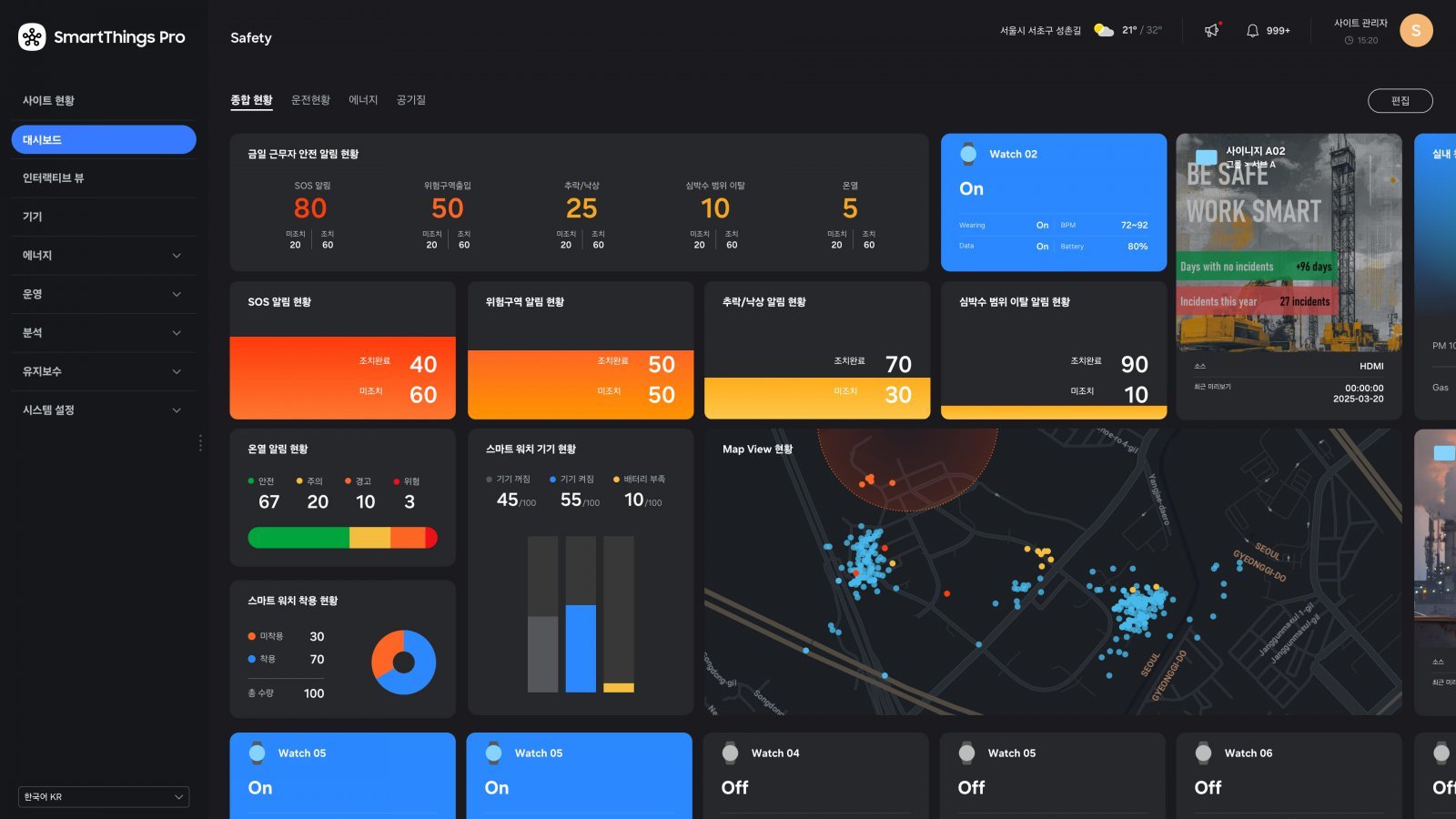 ‘스마트싱스 프로 안전 관리 솔루션’은 건설·생산 현장, 물류센터, 공공, 민간 기업, 격리 병동, 리조트 등 다양한 산업 현장에서 안전하고 효율적인 근무 환경 제공을 위해 활용될 수 있다.