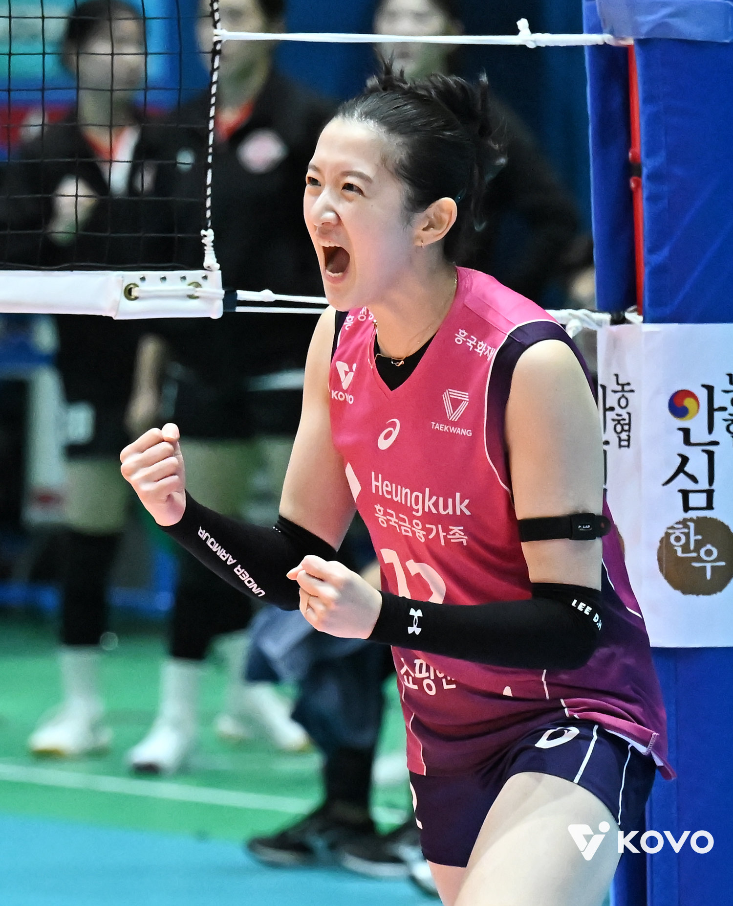 흥국생명 이다현은 좋은 일이든, 나쁜 일이든 모든 일을 새로운 자극으로 삼아 성장하고자 한다. 2025~2026시즌을 앞두고 현대건설을 떠나 FA로 흥국생명에 합류한 그는 새로운 마음가짐으로 새 시즌 준비에 한창이다. 25일 여수 진남체육관에서 열린 GS칼텍스와 KOVO컵 경기 도중 득점 후 기뻐하는 이다현. 사진제공|KOVO