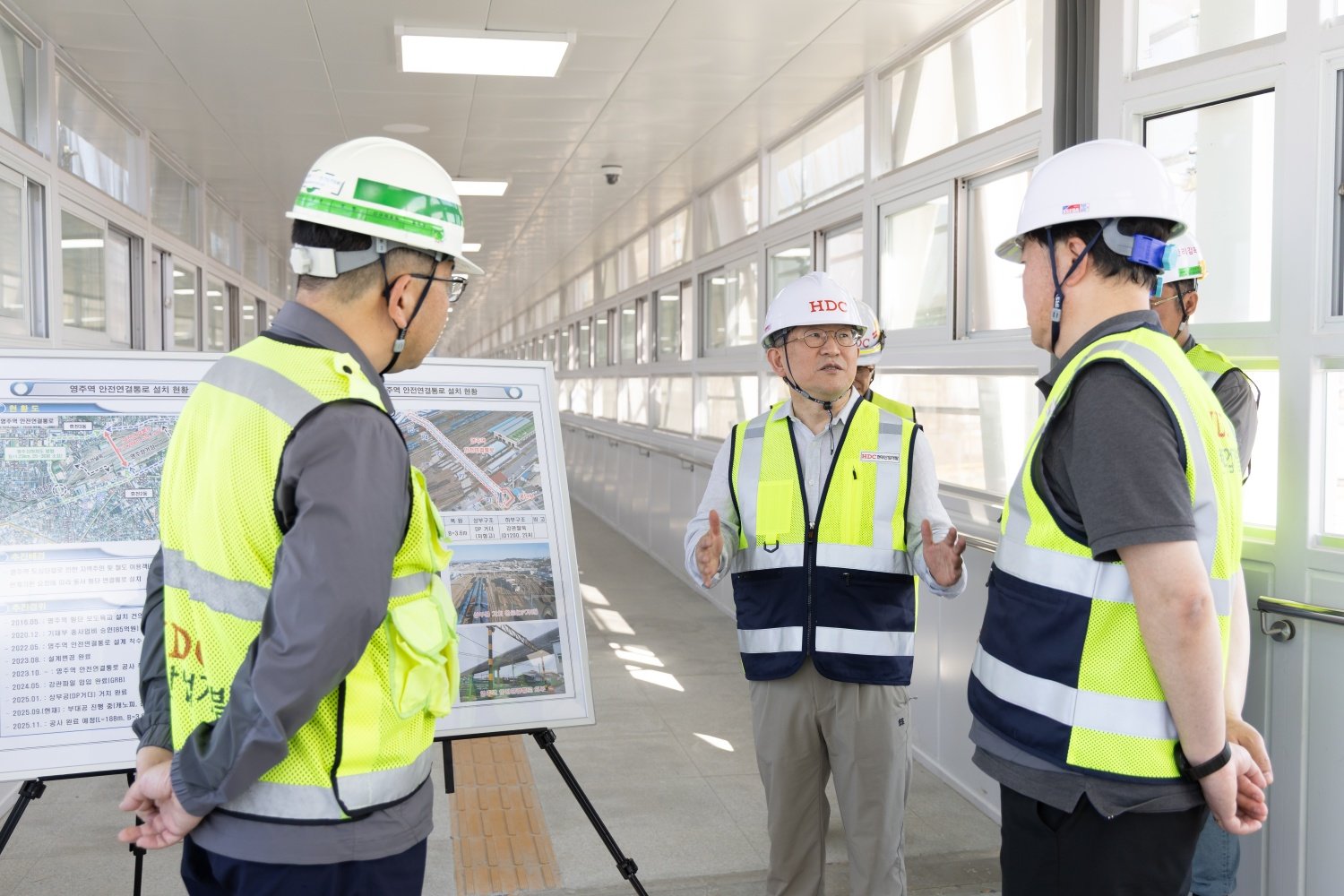 해당 현장은 철도 운행선과 인접해 상시 열차가 통과하는 곳으로, 고위험 작업이 많은 구간이다. 이날 정 대표이사는 고소작업이 이뤄지는 교량 마감 구간의 안전 상태를 중점적으로 살피고, 현장 직원들과 점심을 함께 하며 격의 없는 소통의 시간을 가졌다. 이후 공사 현장 곳곳을 돌며 작업 동선 관리, 안전시설물 해체 및 마감 공정까지 세밀히 확인했다.