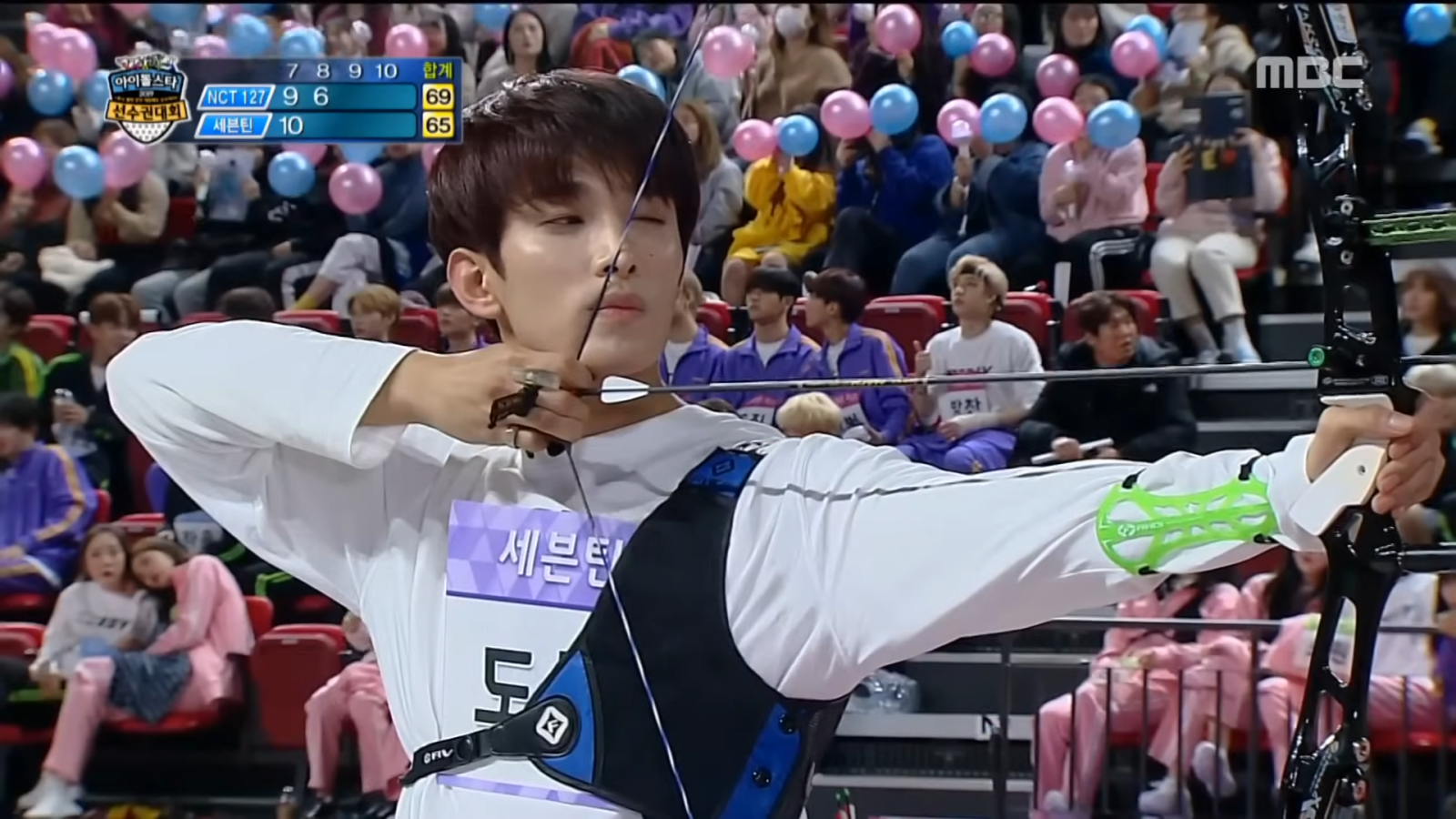 ‘주몽의 후예’라는 말이 있을 정도로 ‘아육대’에서 양궁 종목은 항상 뜨거운 화제를 모았다. 2019년 ‘신궁’의 계보는 세븐틴 멤버 도겸이 이었다. NCT127과의 남자양궁 결승전에서 마지막 주자로 나선 도겸은 ‘4연속 10점’을 쏘며 절정의 기량을 뽐냈다. 표적 정중앙의 카메라 렌즈를 명중시키는 장면은 아직까지 명장면으로 회자되고 있다.