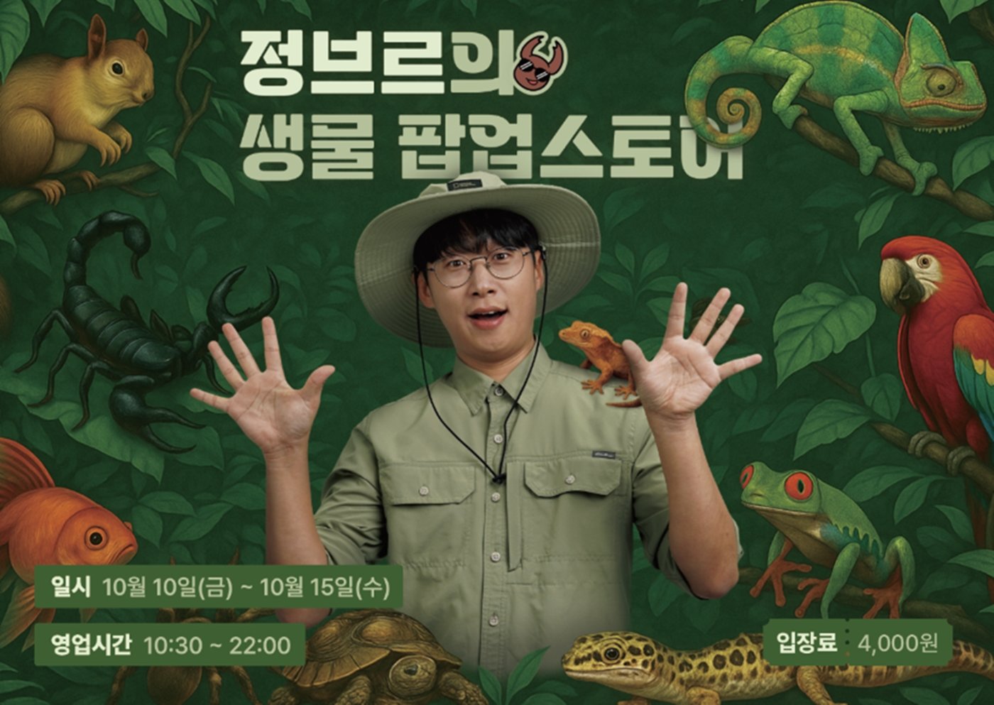이번 팝업스토어에서는 최근 파충류 집사에게 인기를 얻고 있는 크레스티드 게코와 레오파드 게코 도마뱀과 함께 다람쥐, 장수풍뎅이, 사슴벌레 등 이색 생물을 전시 및 분양한다. 또 11, 12, 14, 15일 정브르와 함께 사진 촬영을 할 수 있는 포토타임 이벤트를 진행하며, 모자, 티셔츠, 키링, 스티커 등으로 구성한 정브르 굿즈도 공개한다.