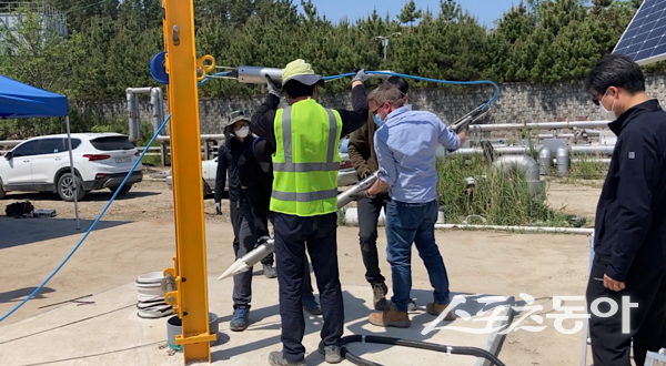 2022년 5월 지열발전부지 내 심부지진계 설치 모습. 사진제공ㅣ포항시