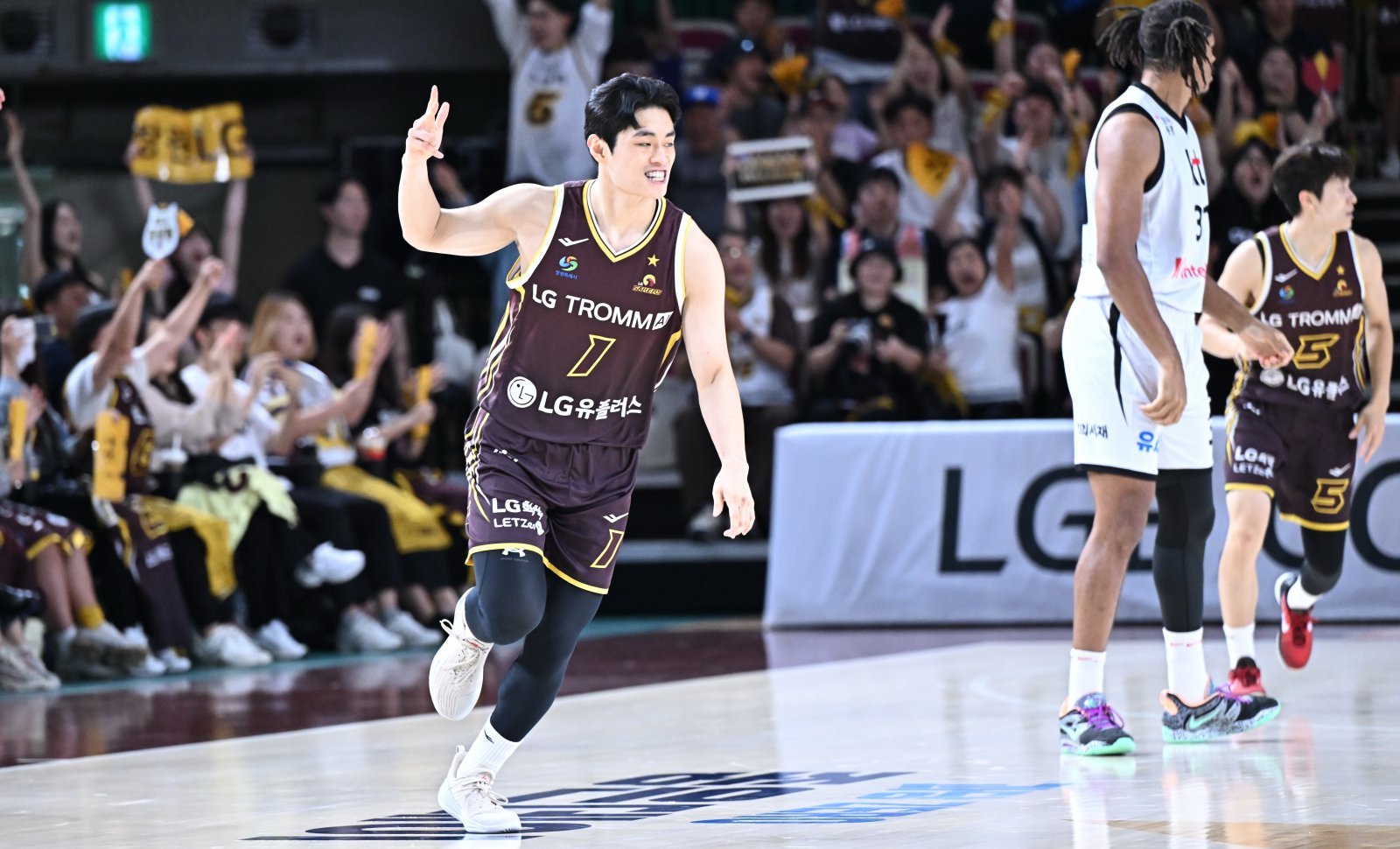 LG 유기상은 12일 창원실내체육관에서 열린 KT와 맞대결에서 3점슛 5개와 함께 17득점을 터트려 팀 승리를 견인했다. 사진제공|KBL