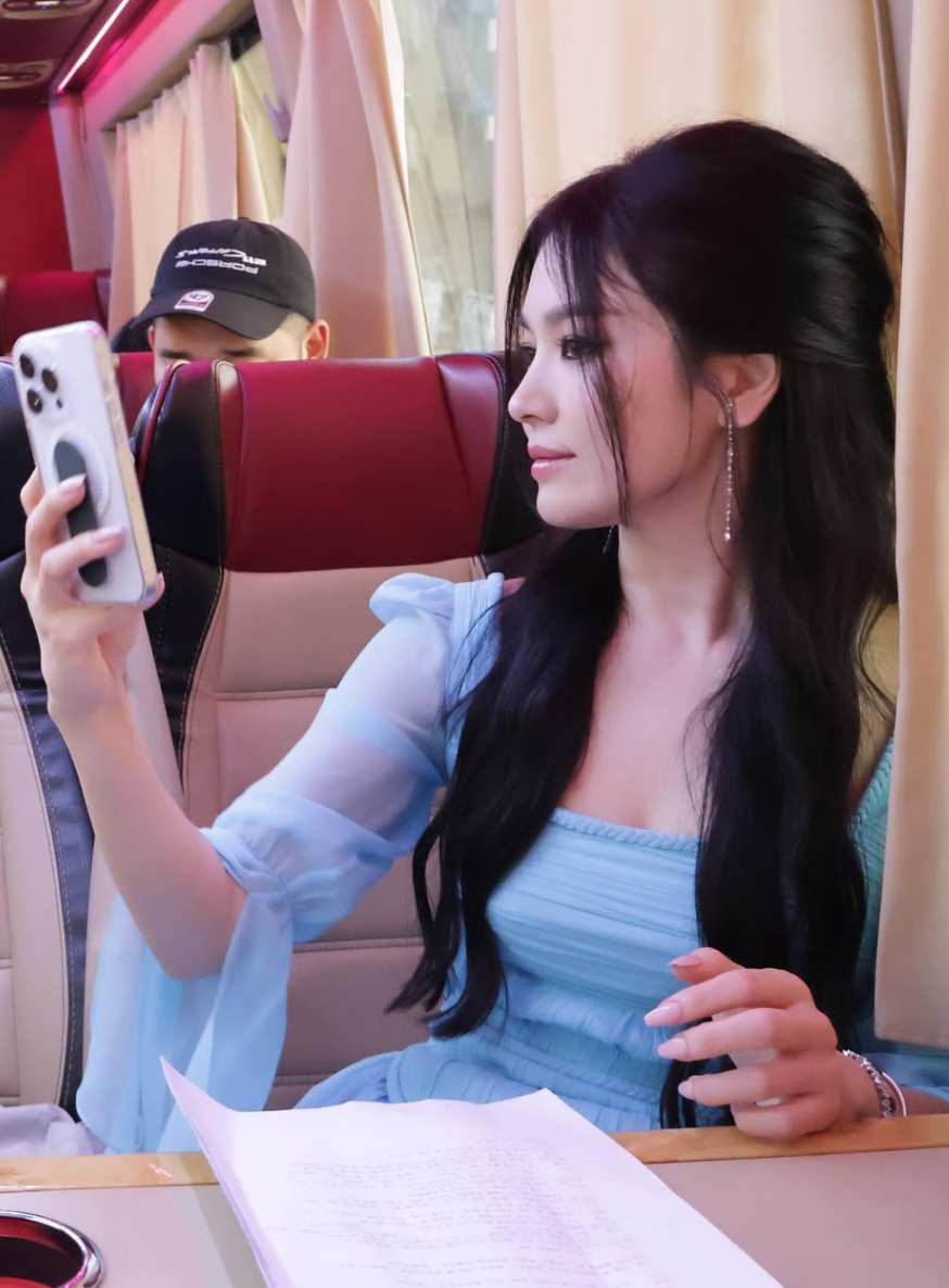 해당 사진은 지난 3일 공개된 넷플릭스 시리즈 ‘다 이루어질지니’ 두바이 촬영 현장을 담은 비하인드 컷. 송혜교는 ‘다 이루어질지니’에서 사탄 지니(김우빈)의 전 여친이자 비를 다스리는 지니인 ‘지니야’로 특별출연했다.