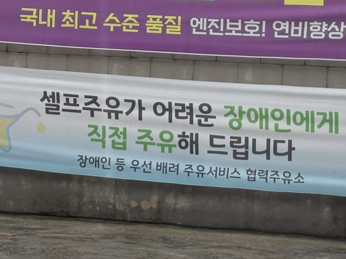이날 함께 공개된 사진에는 ‘셀프 주유가 어려운 장애인에게 직접 주유해 드립니다’라는 현수막이 내걸린 주유소의 모습과 장애인을 대신해 주유하는 직원의 모습이 담겨 눈길을 끌었다.