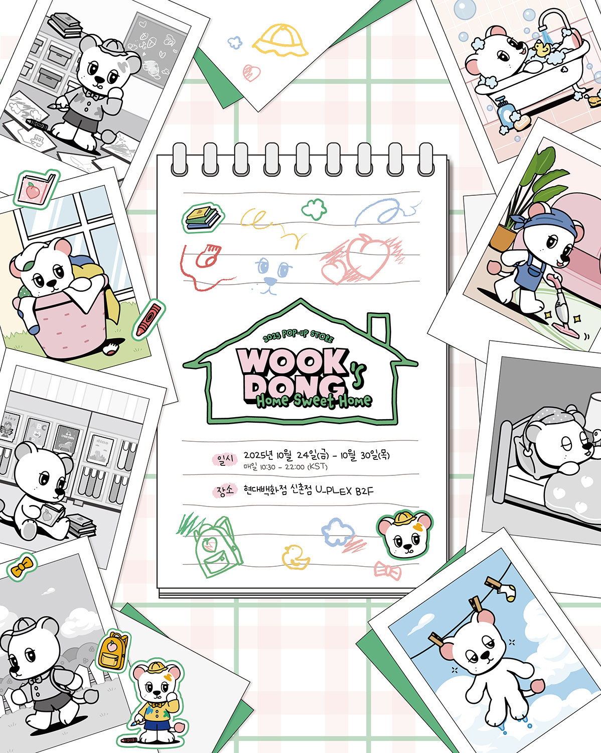 팝업 스토어 ‘WOOKDONG’s Home Sweet Home’은 욱동이의 집을 테마로 구성된다. 거실부터 욕실, 침실 등 욱동이가 일상을 보내는 공간은 포토 스폿과 다양한 이벤트가 마련되어 있어 방문자들에게 즐거움을 선사할 예정이다. 뿐만 아니라, 테마에 어울리는 MD는 물론 매일 욱동이와 함께할 수 있는 다채로운 키링 MD가 판매된다. 특히, 이번 팝업 스토어에서는 색다른 욱동이 인형의 첫 공개가 예정되어 있어 팬들의 기대감을 더욱 끌어올린다.