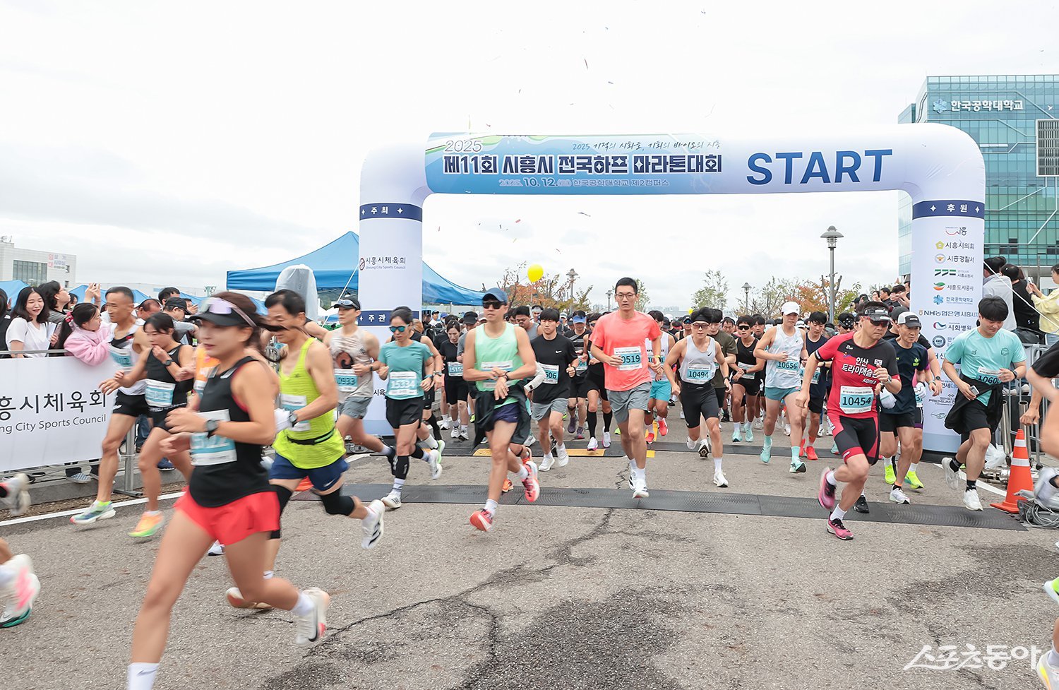 시흥시(시장 임병택)는 지난 10월 12일 거북섬 일대에서 열린 ‘2025 시흥시 전국하프마라톤 대회’가 전국 각지에서 모인 5천여 명의 참가자와 시민들의 뜨거운 열기 속에 성황리에 마무리됐다(대회 모습). 사진제공|시흥시