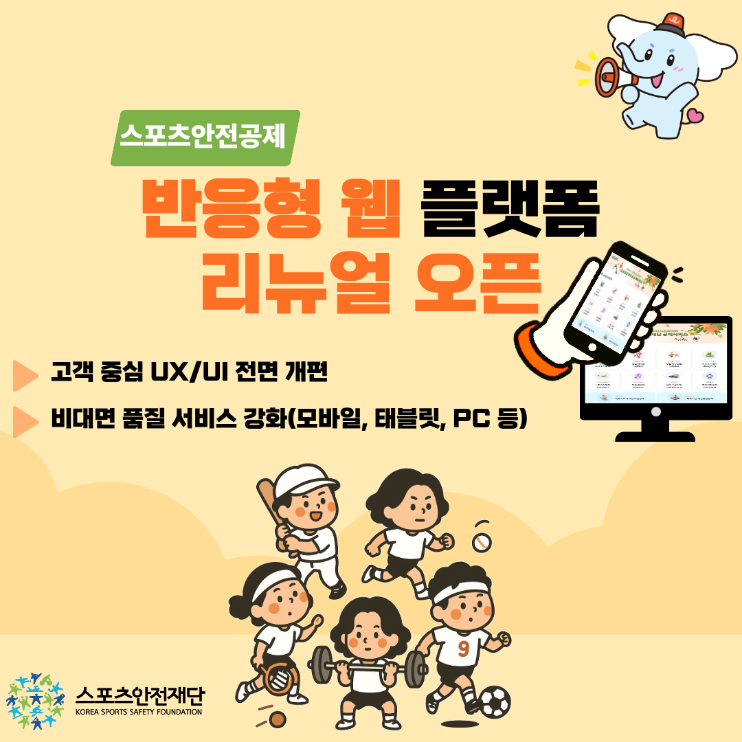 스포츠안전재단(이사장 박장순)이 10월 15일 기존 공제서비스 플랫폼을 전면 개편해 새롭게 선보였다. 이번 리뉴얼은 언제 어디서나 편리하게 공제서비스를 이용할 수 있도록 접근성과 사용자 경험(UX)을 강화하는 데 초점을 맞췄다.