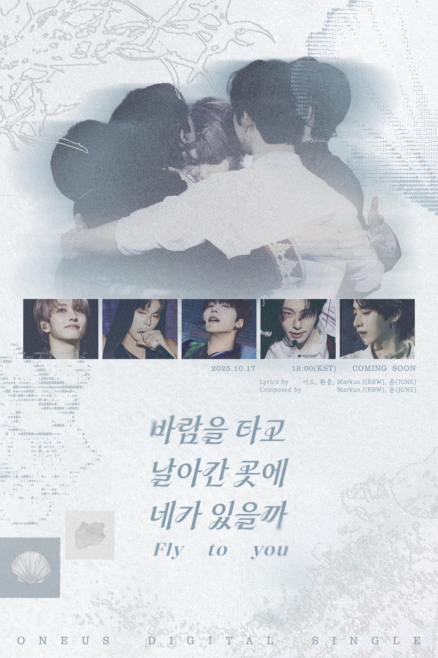 원어스(서호, 이도, 건희, 환웅, 시온)는 오늘(15일) 정오 공식 SNS를 통해 디지털 싱글 ‘바람을 타고 날아간 곳에 네가 있을까 (Fly to you)’의 커밍순 포스터를 게재하며, 오는 17일 깜짝 발매 소식을 전했다.