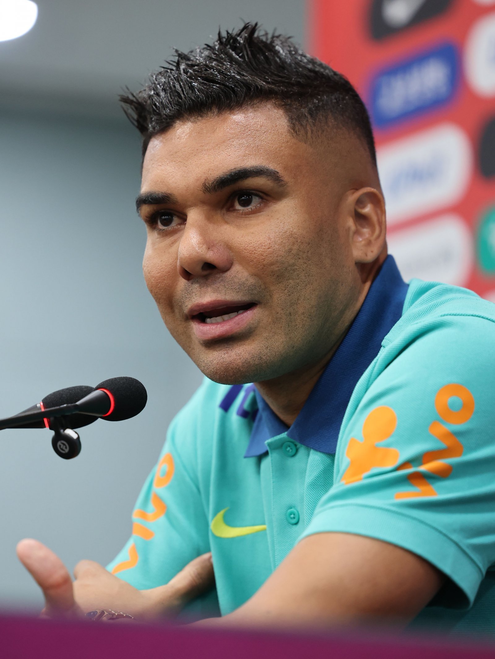 브라질축구대표팀 주장 카세미루가 9일 서울월드컵경기장에서 열린 한국-브라질 친선경기 공식 기자회견에 참석해 각오를 전하고 있다. 상암|뉴시스