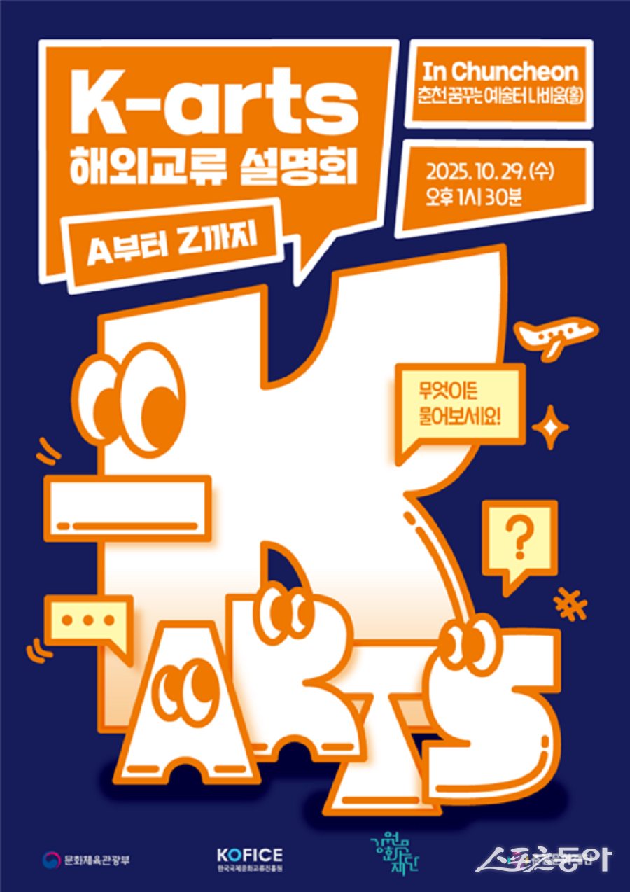 강원문화재단(대표이사 신현상)은 오는 10월 29일 오후 1시 30분, 춘천 꿈꾸는 예술터 3층 나비움에서 열리는 ‘K-arts 해외교류 설명회, A부터 Z까지’의 사전접수를 진행 중이라고 밝혔다.