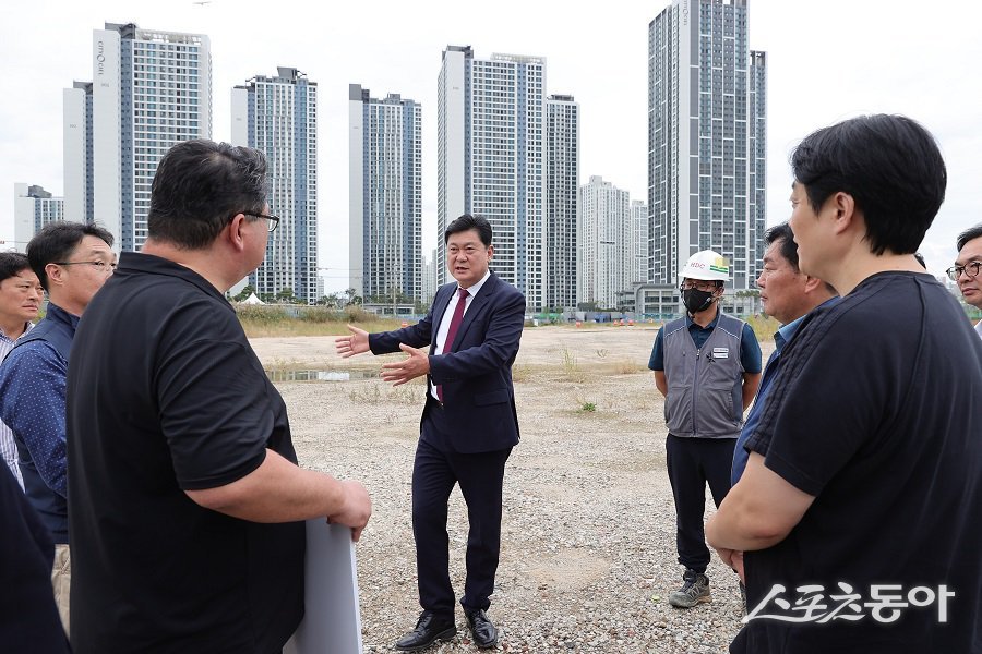 이영훈 인천 미추홀구청장이 학익역(가칭) 신설 사업 현장을 방문해 공사 진행 상황을 점검했다. 사진제공|인천 미추홀구청