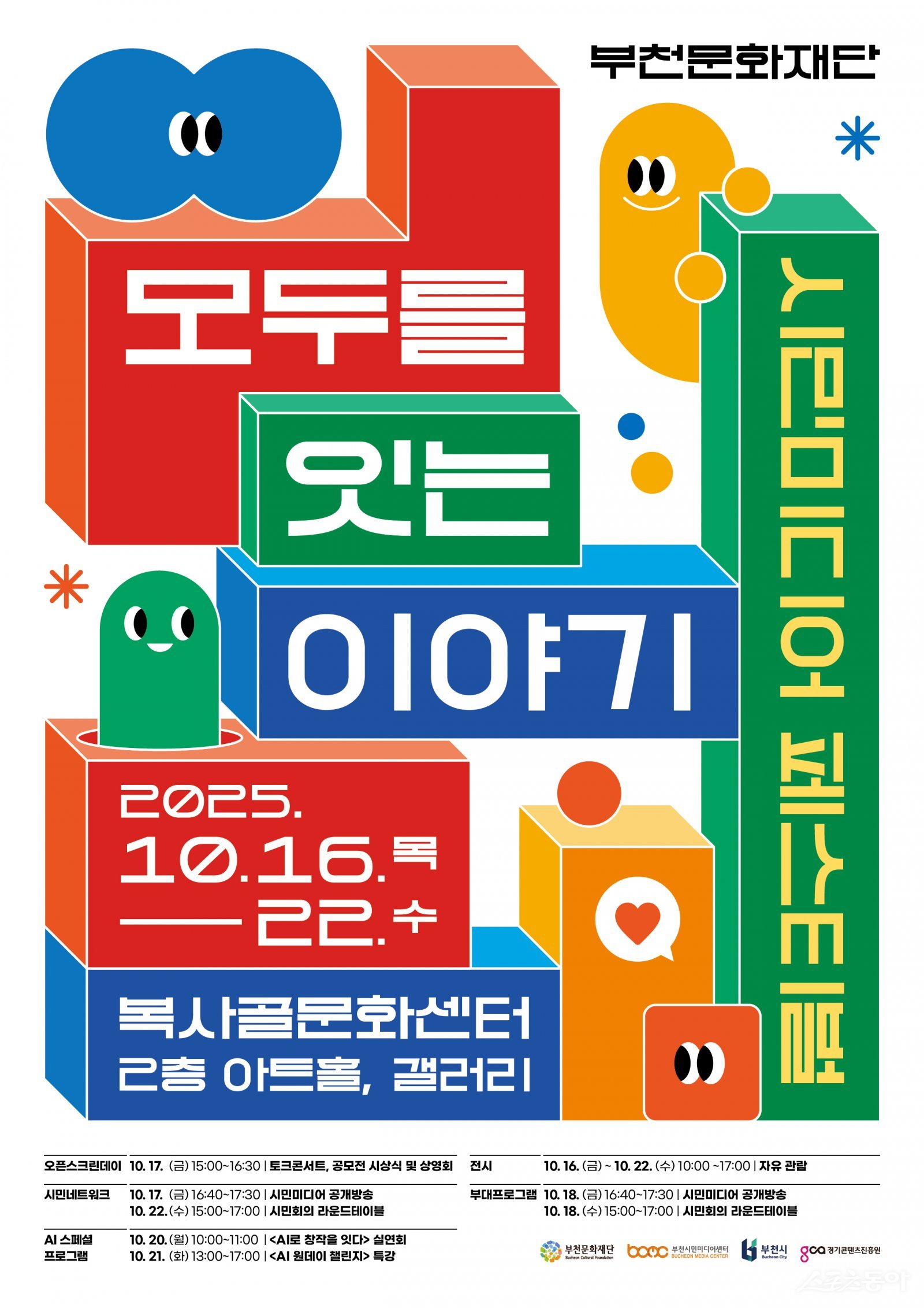 한병환 부천문화재단 대표이사는 “올해 행사는 시민미디어 활동가와 함께 기획한 만큼 의미가 크다”며 “시민이 협력하는 창의적 축제를 통해 부천 문화사업의 정체성과 위상이 더욱 확고히 자리 잡길 기대한다”고 밝혔다.