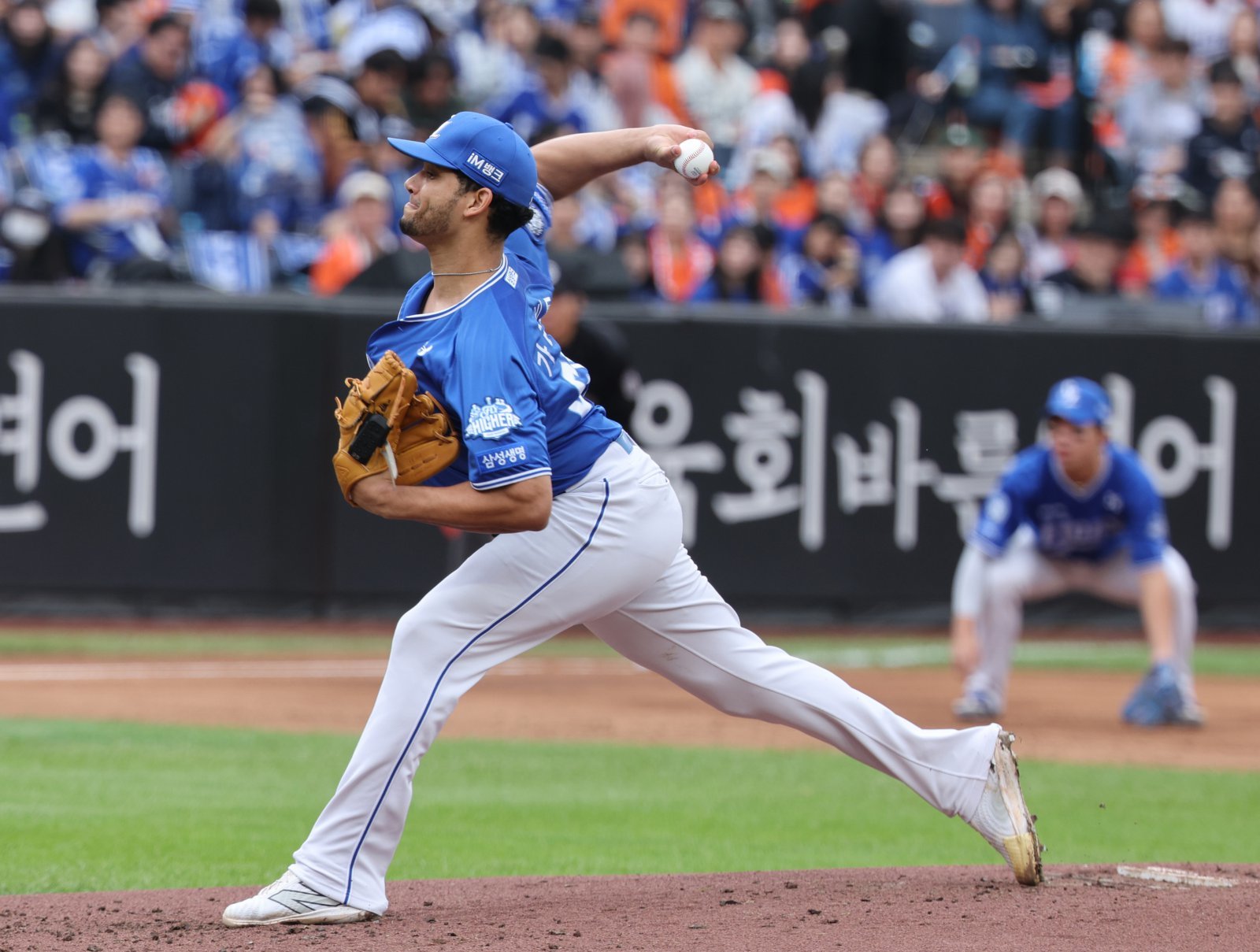 삼성 라이온즈 헤르손 가라비토는 18일 대전 한화생명볼파크에서 열린 ‘2025 신한 SOL 뱅크 KBO 포스트시즌(PS)’ 한화 이글스와 플레이오프(PO·5전3선승제) 1차전에 선발등판해 3.1이닝 7안타 2볼넷 1사구 5실점 투구를 기록했다.