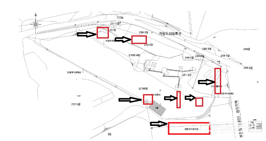게다가 업체는 농지(답) 805㎡를 야적장으로 활용하거나 임야를 훼손해 적치장으로 사용한 것으로 확인돼 ‘농지법’과 ‘산지관리법’ 위반 가능성도 제기되고 있다. 두 법률 위반 시 5년 이하의 징역 또는 5천만 원 이하의 벌금형에 처해질 수 있다.