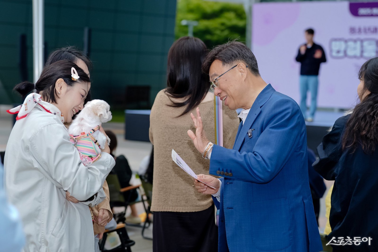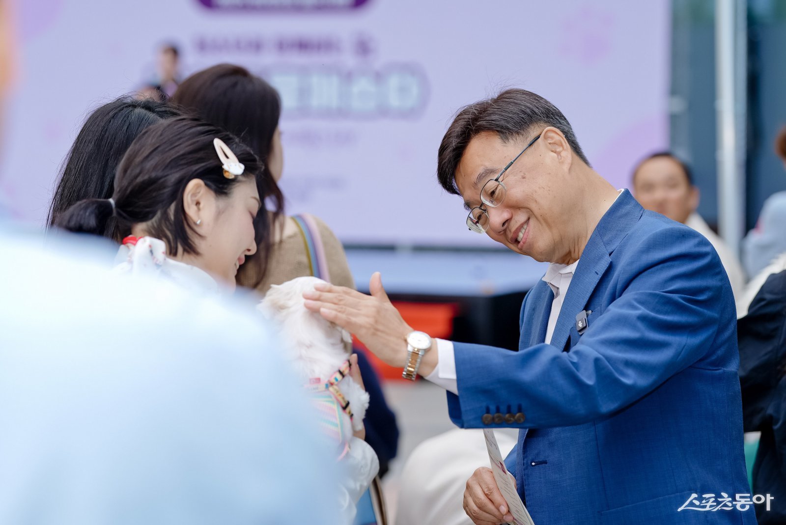 신상진 성남시장이 반려동물 페스티벌에서 시민들과 소통하고 있다. 사진제공ㅣ성남시