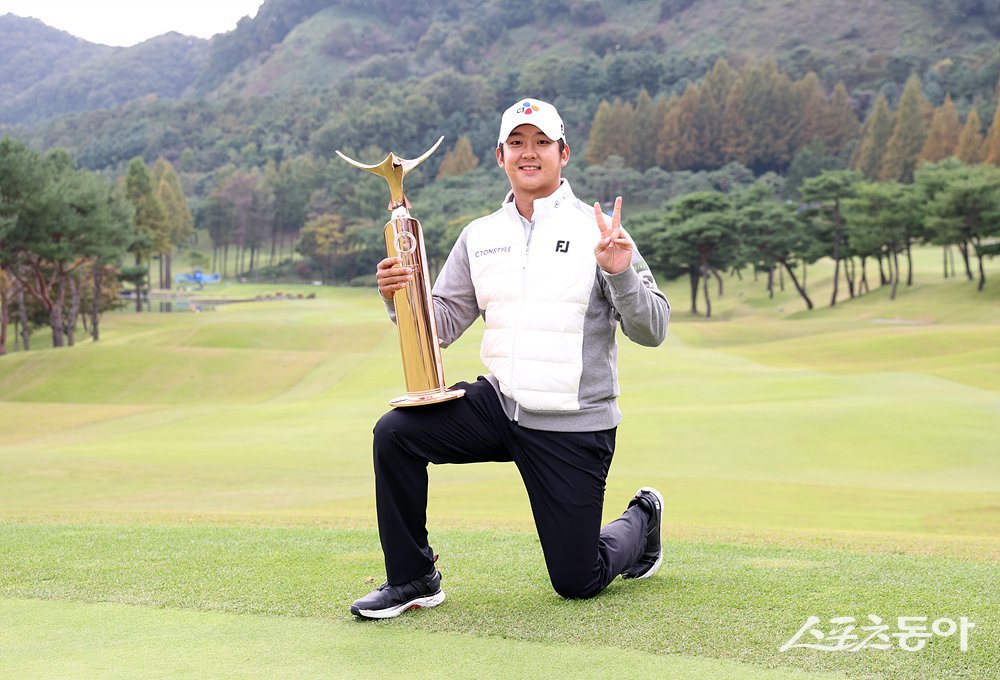 최승빈이 더채리티 클래식에서 2년 4개월 만에 통산 2승을 수확한 뒤 우승 트로피를 들고 포즈를 취하고 있다. 사진제공 | KPGA