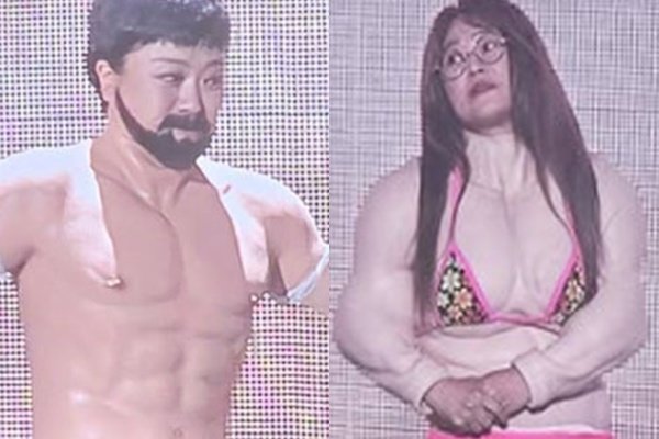 사진 속 김숙은 근육질 몸매를 뽐내는 의상을 착용했고, 송은이는 비키니 의상을 착용해 눈길을 끈다.