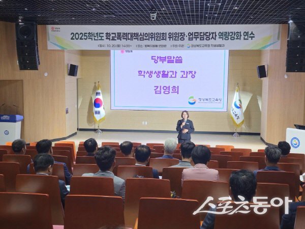 경상북도교육청(교육감 임종식)은 10월 20일 본청 행복지원동 연화관에서 도내 교육지원청 학교폭력대책심의위원회 위원장과 업무 담당자 등 100여 명이 참석한 가운데 ‘학교폭력 심의 절차의 공정성과 전문성 강화를 위한 역량 강화 연수’를 개최했다고 밝혔다.학교폭력대책심의위원회는 「학교폭력예방 및 대책에 관한 법률」에 따라 교육지원청에 설치된 법정 위원회로, 학교폭력의 예방과 사안 조사·심의, 가해 학생의 선도 및 징계, 피해 학생 보호 등 학교폭력 대응의 핵심 역할을 맡고 있다.