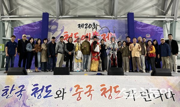 청도군(군수 김하수)이 주최하고 (사)한국예총 청도지회(회장 손만식)가 주관한 청도예술제 특별기획행사 ‘한중 문화예술 교류전’이 10월 17일부터 19일까지 3일간 청도반시축제장 내 실내테니스장에서 성황리에 열렸다.이번 행사는 한국 청도군과 중국 칭다오 예술인들이 함께한 국제 문화예술 교류의 장으로 마련돼, 양국의 예술적 감성과 지역 문화를 한데 엮은 다채로운 프로그램이 관람객의 뜨거운 호응 속에 펼쳐졌다.