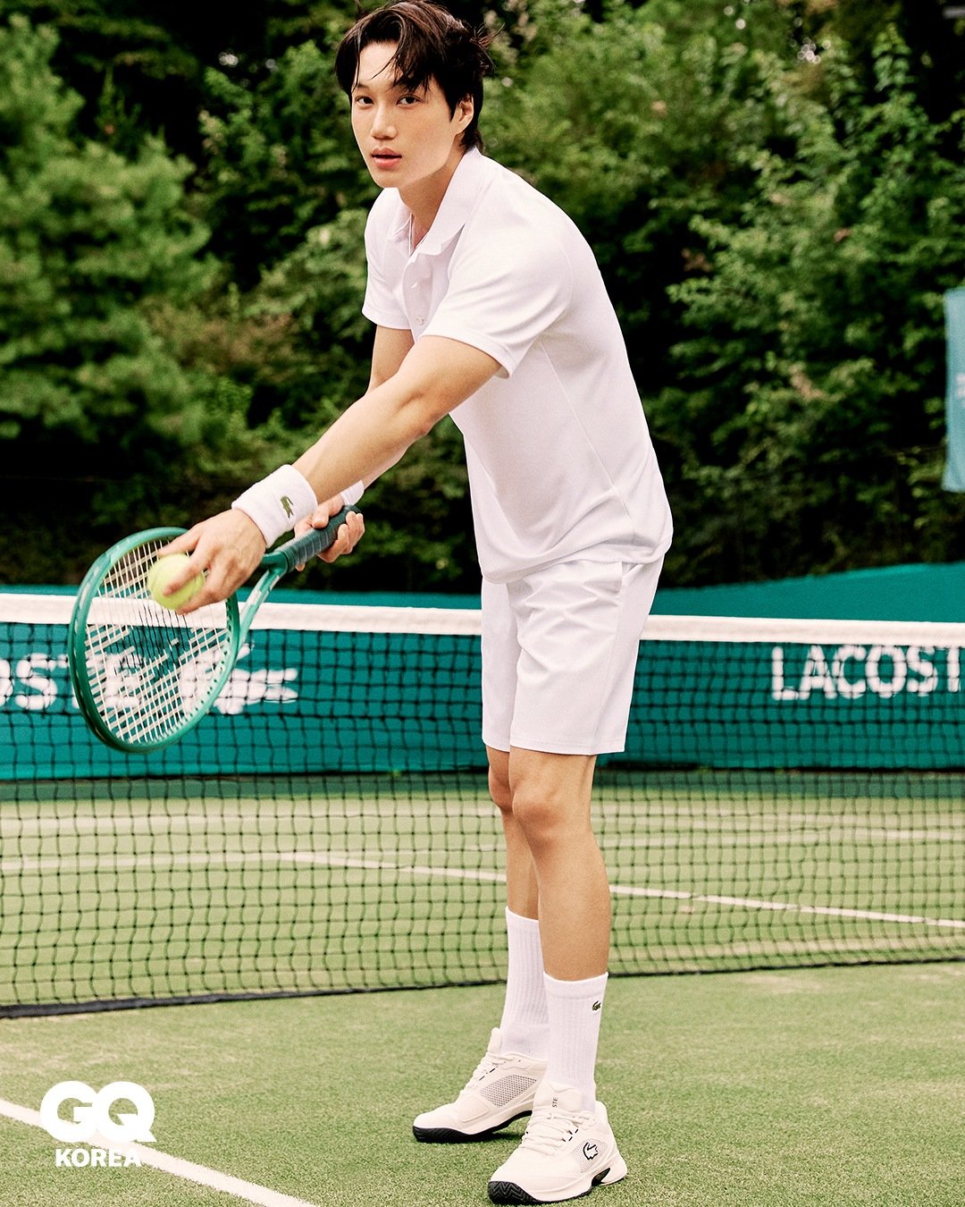카이는 이번 화보에서 테니스 코트를 배경으로 라코스테 2025 가을-겨울 컬렉션 및 테니스 컬렉션을 자신만의 밝고 에너지 넘치는 모습으로 완벽하게 소화하며 시선을 사로잡았다.