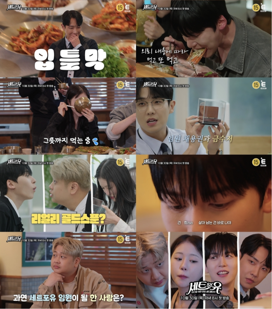배우 이준, 셰프 윤남노, 원어스 건희, 유튜버 맵하니가 메뉴판 속 완벽 조합을 찾아내는 ‘세트포유 TF팀’으로 뭉쳐, 리얼 금수저와 승진을 걸고 한판 승부를 펼친다.