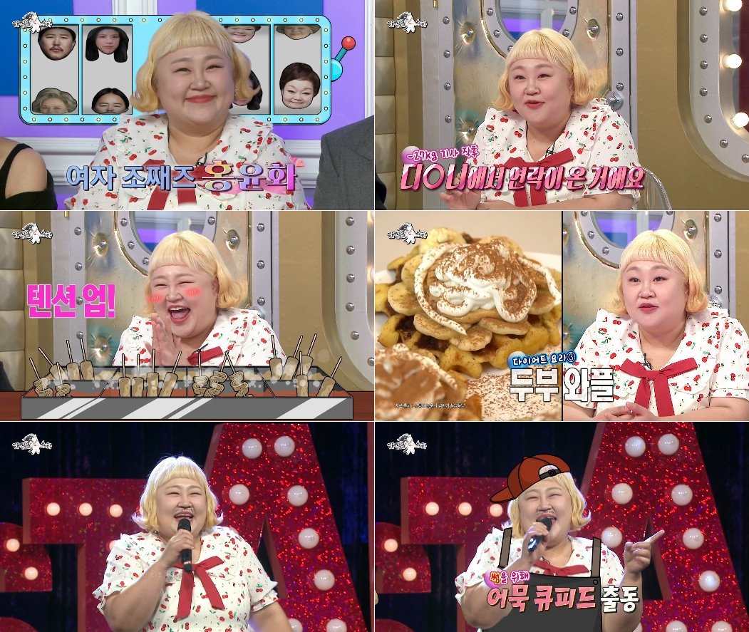 홍윤화는 지난 22일 방송된 MBC 예능 프로그램 ‘라디오스타-우린 제법 잘 어울려요’ 특집에서 게스트 김광규, 김완선, 조째즈와 출연했다.