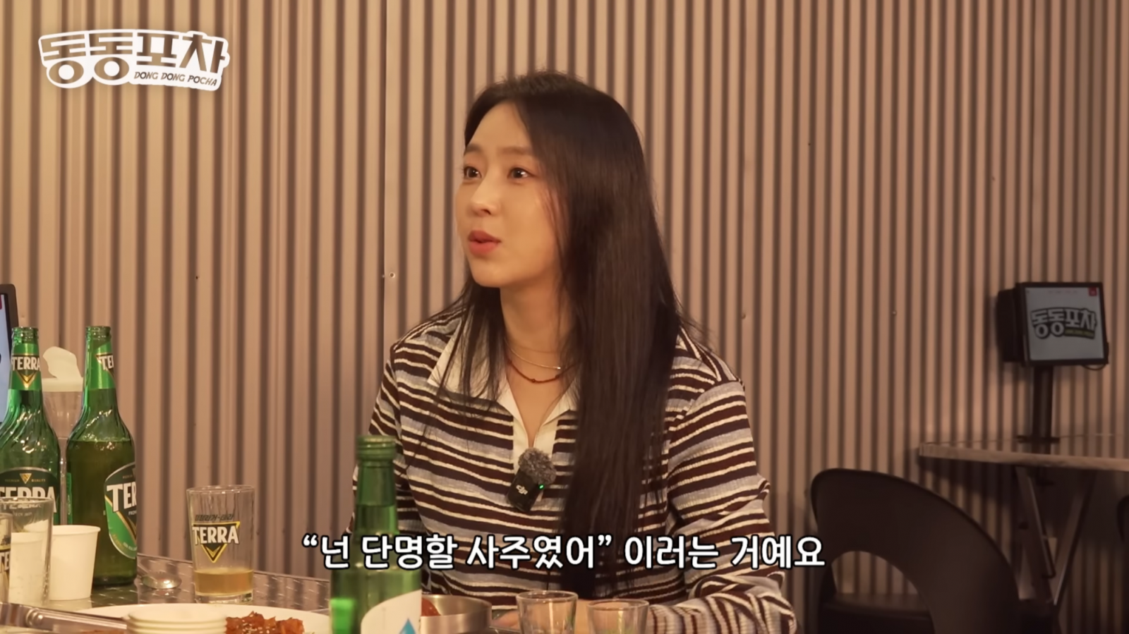 예원은 “내가 너무 유명해지고 많은 걸 가지면 빨리 죽는 사주라 조상님들이 도와서 다 가져갔다더라”며 웃으며 덧붙였다. 이에 골든차일드 장준은 “그럼 그때 조상님 눈빛이었냐”고 너스레를 떨었고, 신동은 “그분도 신들렸던 거 아니냐”고 농담을 건네며 분위기를 유쾌하게 바꿨다.