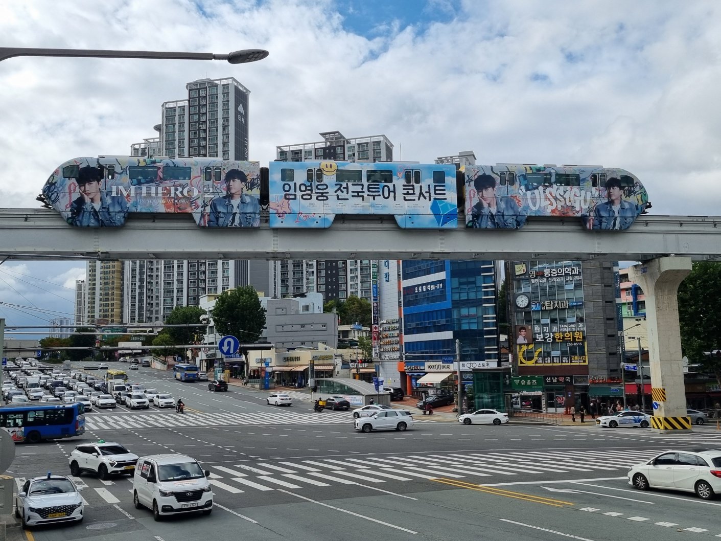 이제 무대는 대구다. 대구 콘서트를 맞아 영웅시대가 또 하나의 ‘도심 축제’를 준비했다. 바로 대구 도시철도 3호선 전체를 감싼 초대형 랩핑 열차다. 노란 궤도를 달리는 ‘임영웅 열차’는 그 자체로 움직이는 응원봉이자 팬심의 결정체다.