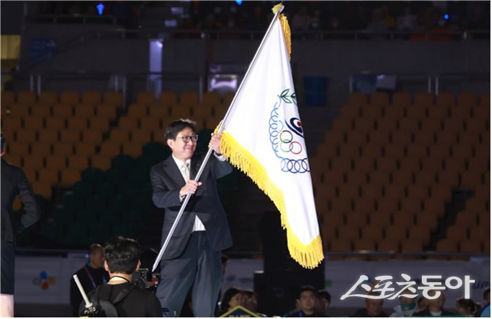 박형준 부산시장이 대회기를 흔들고 있다. (사진제공=부산시)