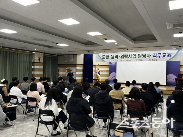 청도군은 10월 24일 군청 대회의실에서 도급‧용역‧위탁사업 수행 과정에서 발생할 수 있는 중대 산업재해를 예방하기 위해 전 부서 사업 담당자를 대상으로 ‘안전보건 직무교육’을 실시했다.
