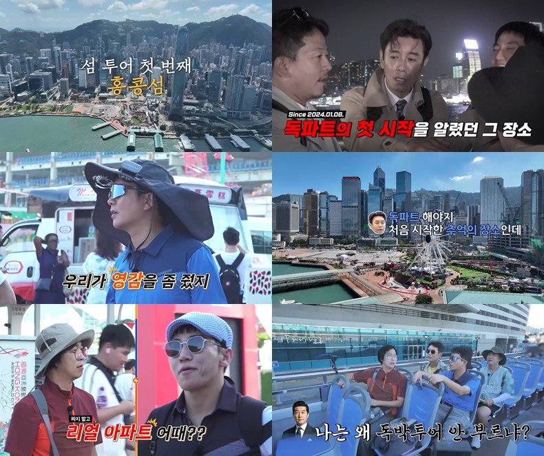 이번에도 ‘독파트’ 게임을 한 이들은 ‘교통비 독박자’를 정한 뒤 곧장 홍콩의 상징인 ‘2층 버스’를 탄다. 2층에 자리를 잡은 김준호는 “아까 공항에서 입국 심사 할 때, 배우 김상중 선배님을 만났다”고 말한다.