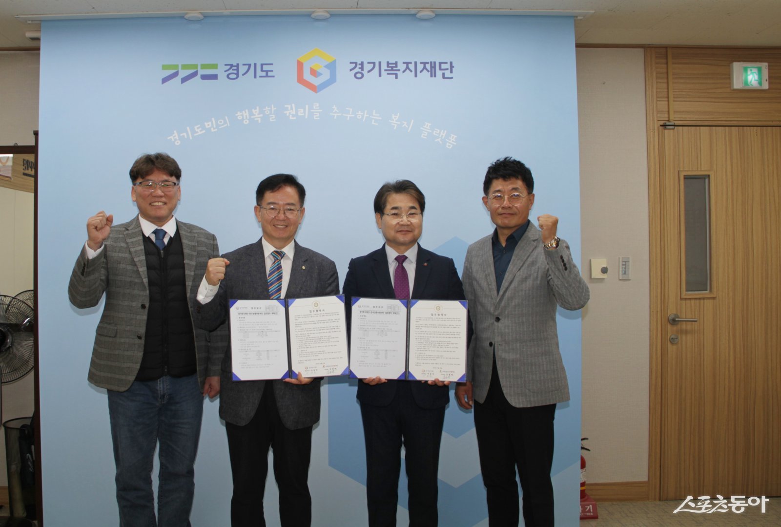 경기복지재단(대표이사 이용빈)은 지난 23일 수원시 경기복지재단 회의실에서 한국생명사랑재단과 ‘생명나눔 문화 확산 및 장기기증 활성화를 위한 업무협약(MOU)’을 체결했다. 사진제공|경기복지재단