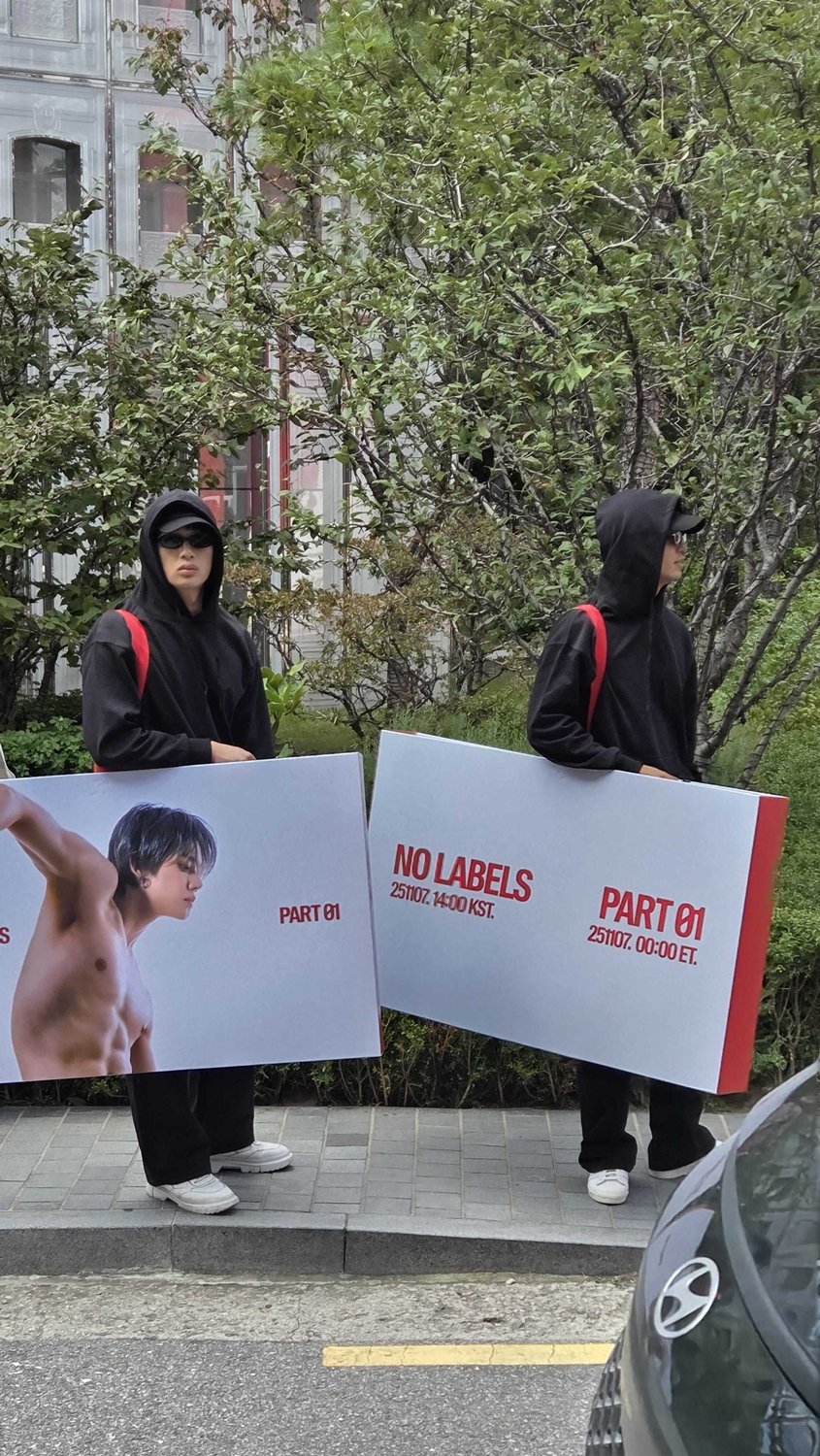 지난 24일 오후 성수동 곳곳에 연준의 첫 솔로 앨범 ‘NO LABELS: PART 01’ 발매를 기념하는 게릴라 포스터가 등장했다. 포스터 속 연준은 상의를 탈의한 채 자유롭게 팔을 뻗고 있다. 유연한 동작이 마치 행위 예술의 한 장면처럼 느껴진다. 신보의 키 컬러인 빨간색으로 적은 앨범명과 발매일이 강렬한 인상을 남기며 거리를 오가는 사람들의 시선을 사로잡는다.