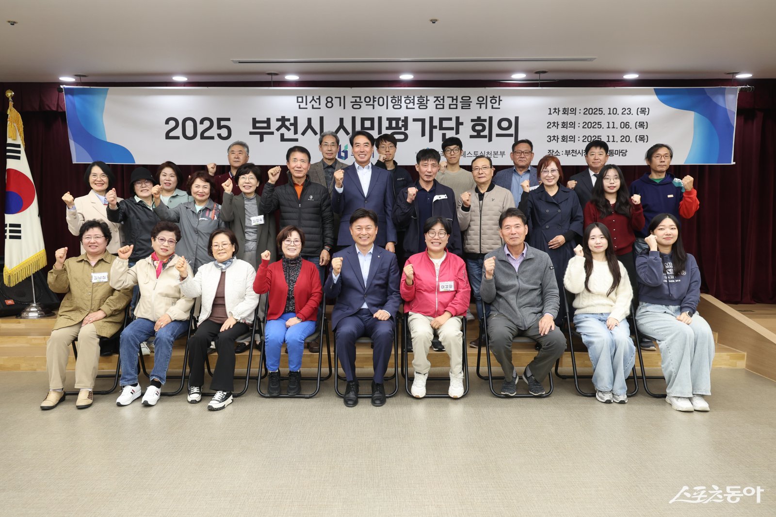 조용익 부천시장과 2025년 공약이행 시민평가단이 기념촬영을 찍고 있다. 사진제공|부천시