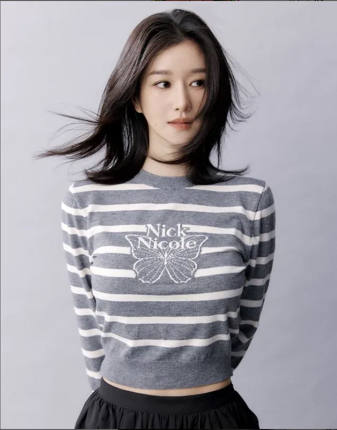 로고 위로 살짝 올라간 나비 자수, 여유로운 핏, 부드럽게 떨어지는 실루엣까지. 딱 봐도 심플한데 묘하게 분위기가 있다. ‘평범한데 안 평범한’, 그게 서예지의 영역이다.