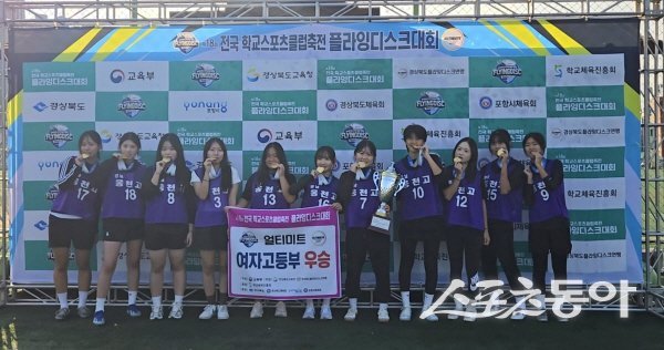 제18회 전국학교스포츠클럽 축전 플라잉디스크대회 여고부 우승 경남웅천고 선수들이 기념 촬영하고 있다. 사진 ㅣ 나영조 기자