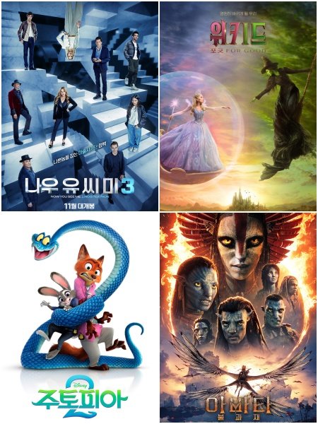11월 19일에는 뮤지컬 블록버스터 ‘위키드’의 속편 ‘위키드: 포 굿’이 출격한다. 같은 제목의 브로드웨이 뮤지컬을 스크린에 옮긴 작품으로, 전편 ‘위키드’는 7억 5644만 달러(1조 874억 원)의 흥행 수입을 기록하며 지난해 글로벌 흥행 5위에 오른 바 있다. ‘위키드: 포 굿’ 개봉에 앞서 11월 5일부터 2주간 ‘위키드’의 재상영이 결정돼 흥행 예열에도 나선다.