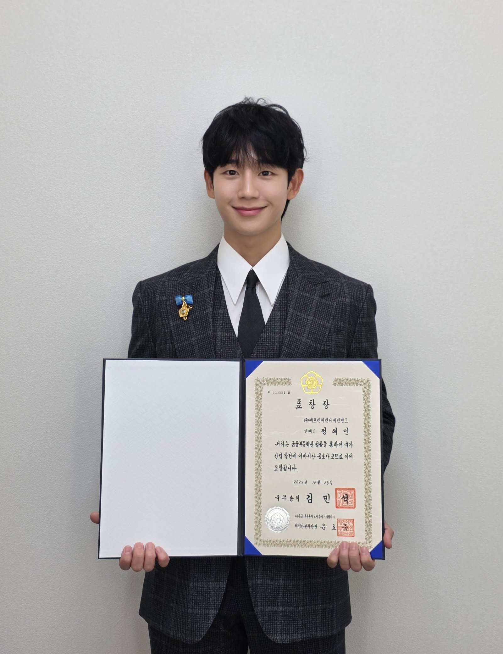 배우 정해인이 ‘금융의 날’ 기념식에서 국무총리표창을 받았다.