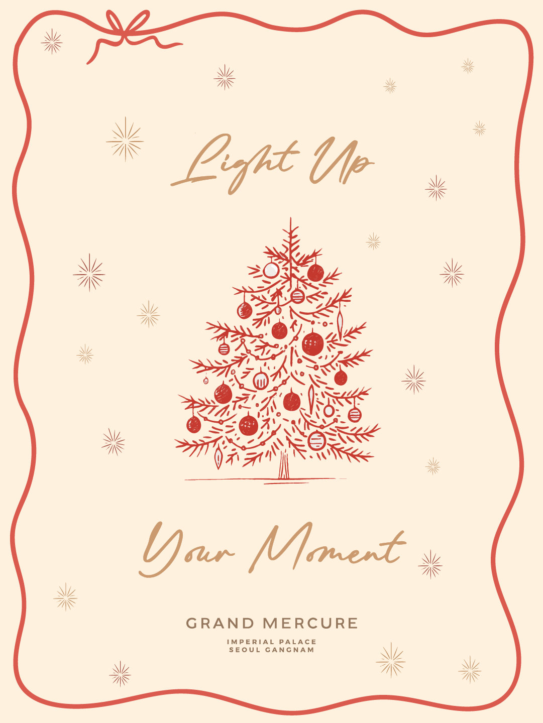 그랜드 머큐어 임피리얼 팰리스 서울 강남이 올해 연말 시즌의 시작을 알리는 트리 점등식 ‘Light up your moment!’를 11월 1일 오후 12시부터 5시까지 호텔 1층 로비와 카페 델마르 일대에서 연다.